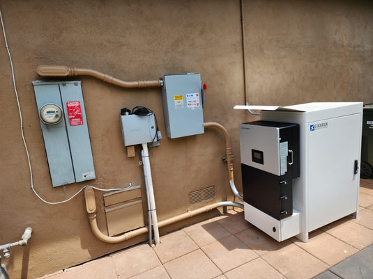 We offer an optional rain/snow cover that attaches to the top of the cabinet and protects the inverter.